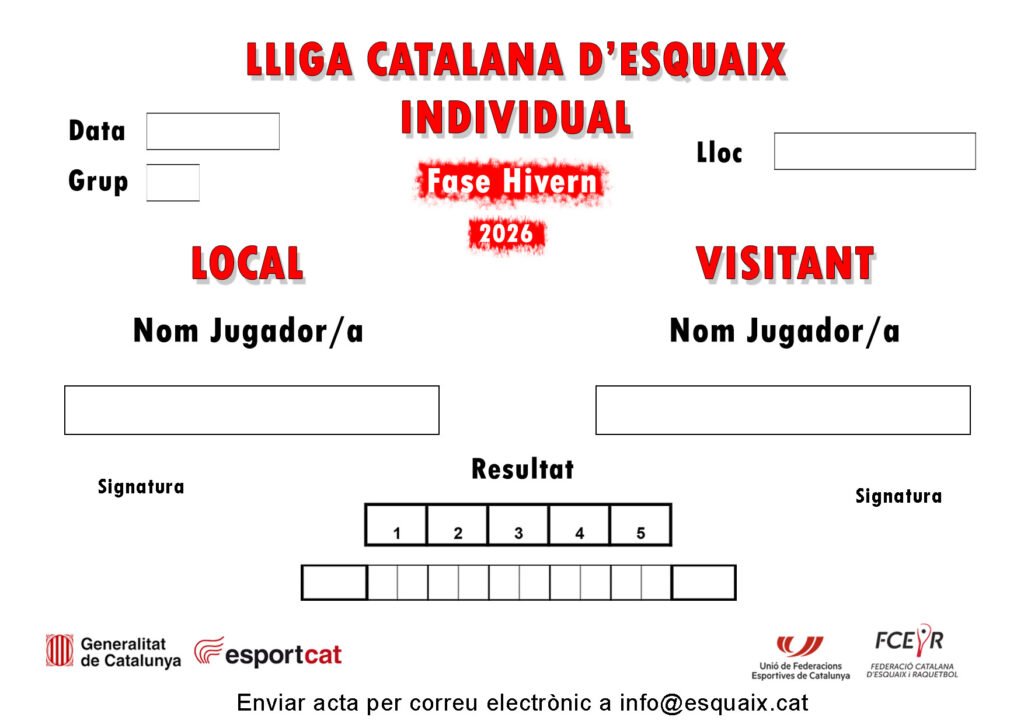 Un cop acabat el partit s’ha d’enviar l’acta amb el resultat a: