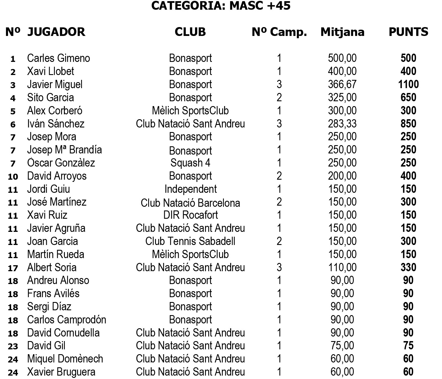 LLiga Catalana d’Esquaix Individual